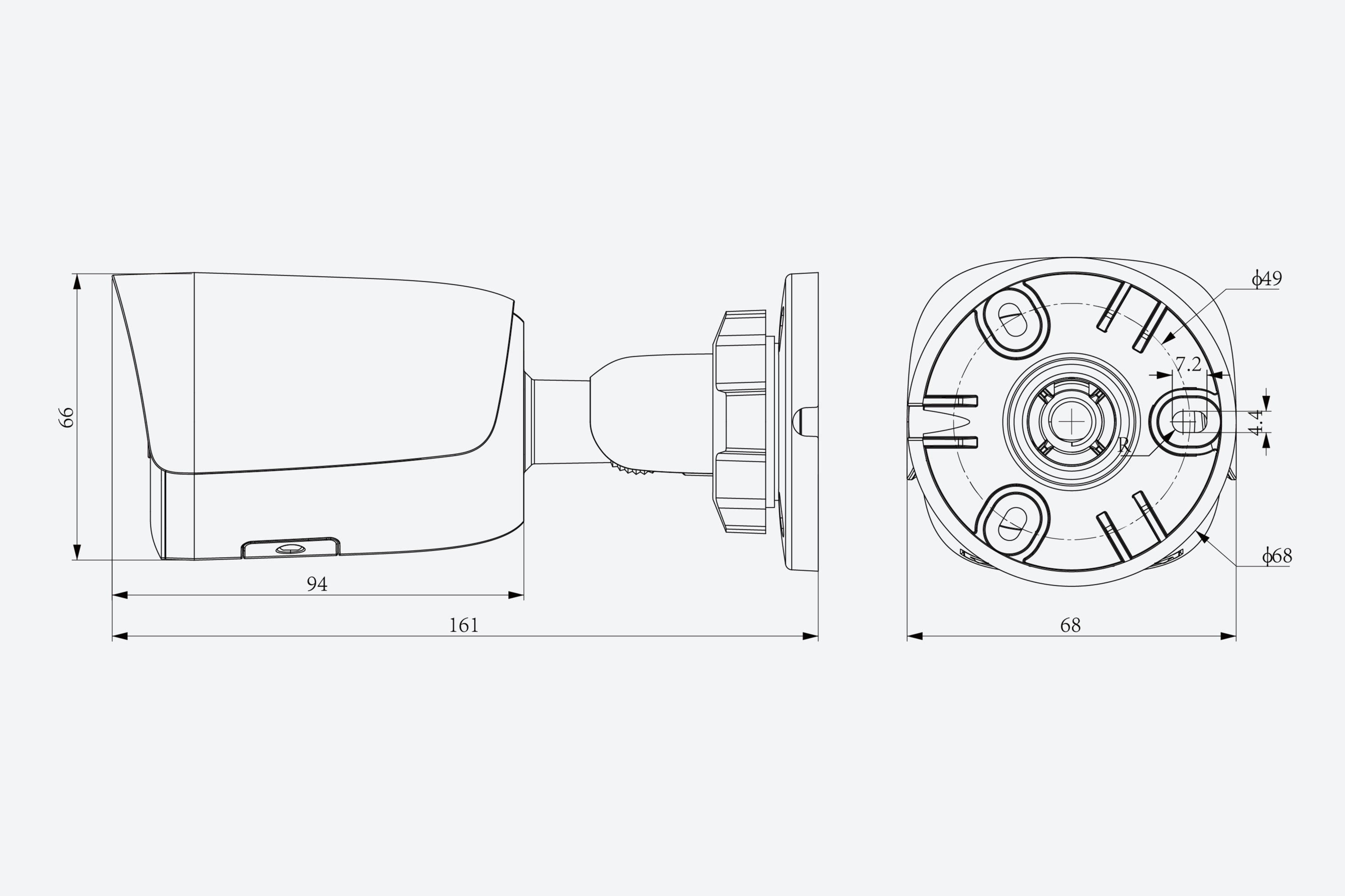 IP-камера цилиндрическая • 8Мп 4K@20к/с • Объектив: 4мм • Светочувствительность: 0.002 Лк • ИК-подсветка: 50м • Встроенный микрофон • microSD до 512 ГБ • Распознавание: человек/транспортное средство • Температура эксплуатации: -35°~65° • PoE • Корпус: металл • Пылевлагозащита: IP67