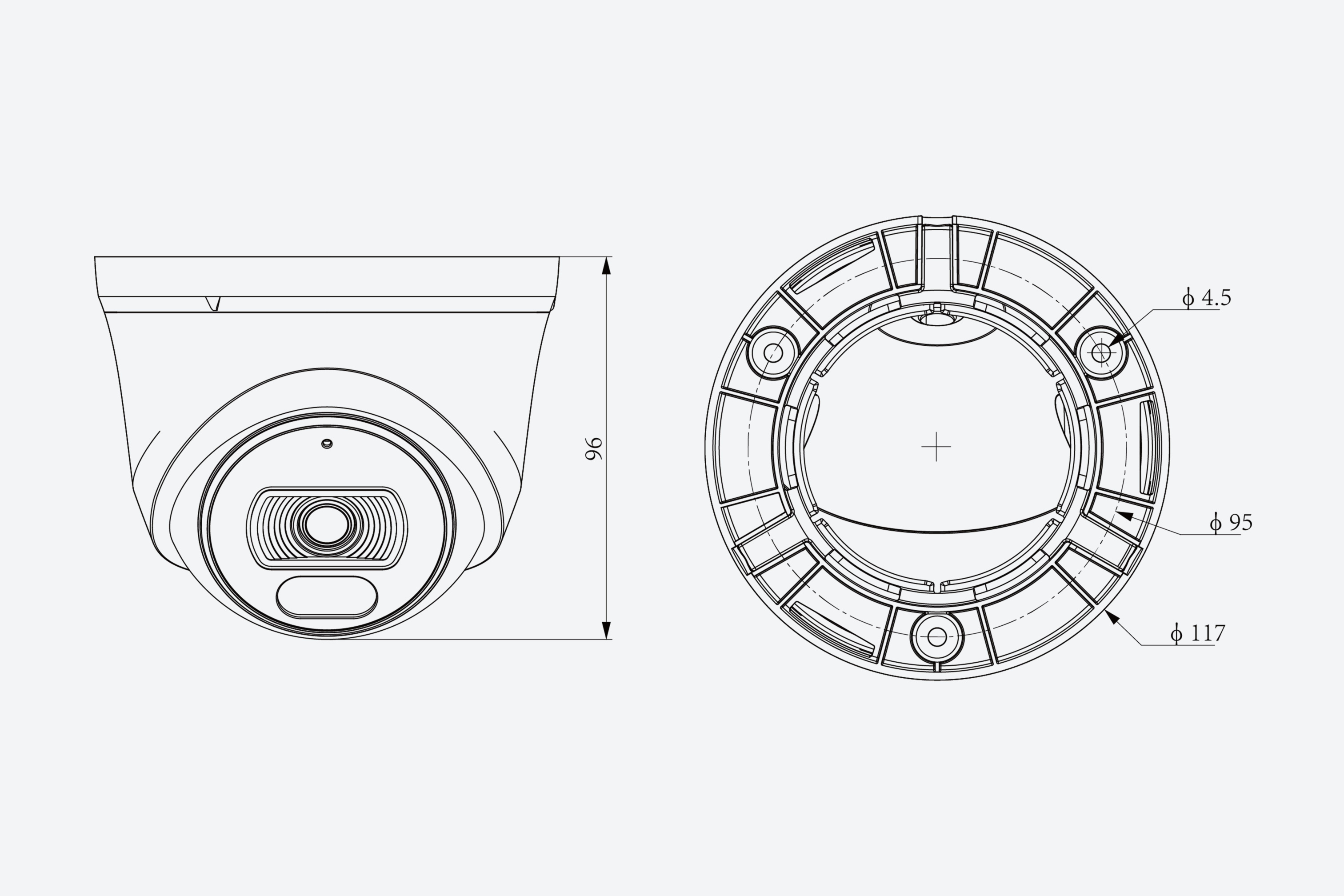 IP-камера купольная (шар) • 2Мп 1080p@30к/с • Объектив: 2.8мм • Светочувствительность: 0.02 Лк • ИК-подсветка: 30м • Встроенный микрофон • Температура эксплуатации: -30℃~60℃ • PoE • Корпус: металл+пластик