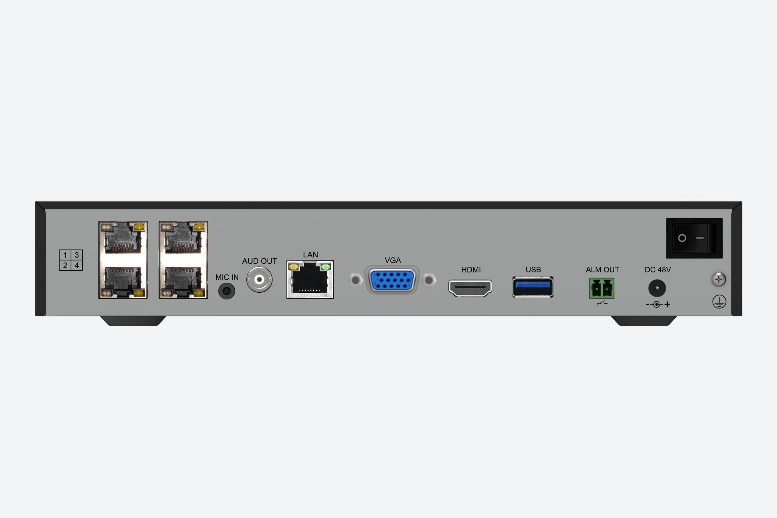 5-канальный NVR • Входящий/исходящий трафик: 60/40 Мбит/с • Сжатие: S+265, H.265, S+264, H.264 • Декодирование: 8Мп (30к/с)×1 или 1080р (30к/с)×5 • 4-канальный синхронный просмотр • HDD до 10 ТБ • HDMI + VGA • HDMI до 4K • 1×RJ-45 (10/100 Мбит/с) • 4×PoE (10/100 Мбит/с) • S+265 (экономия места до 75%) • Обновление через облако
