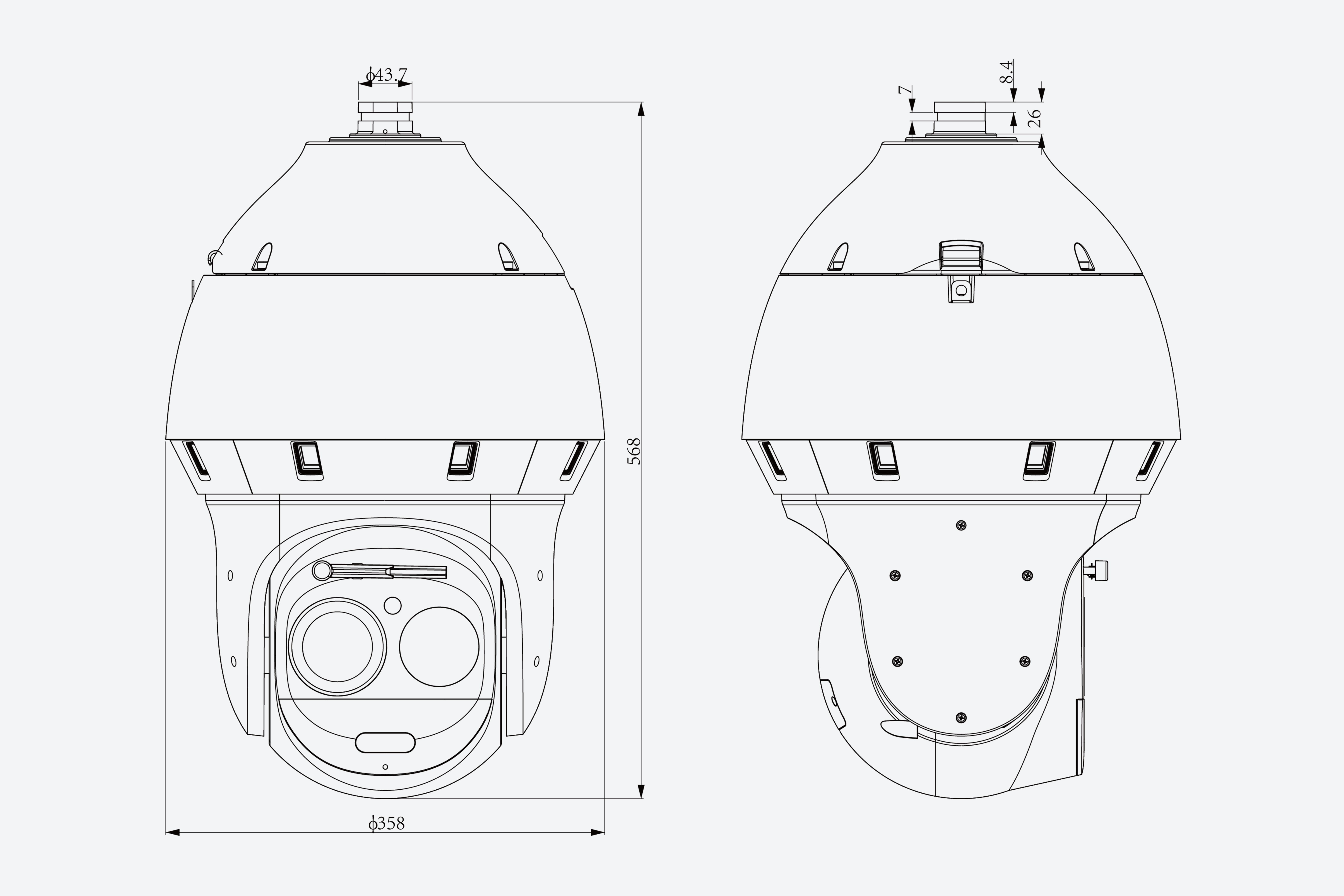 IP-камера поворотная с панорамным модулем • Панорама: 5520×2400@30к/с, Детализация: 4Мп 1440р@30к/с • Объектив панорамы: 2.8 мм, объектив детализации: 5.7-359 мм • Светочувствительность: 0.0004/0.001 Лк • microSD до 512 ГБ • Интеллектуальное видеонаблюдение • Захват лиц (до 32 лиц) • Распознавание: человек/транспортное средство • Температура эксплуатации: -40°C~70°C • Питание: DC36V • Пылевлагозащита: IP66
